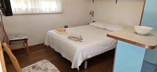 Empfohlen für 1 bis 2 Personen, Platz für ein tragbares Kinderbett ist gegenüber dem Bett.