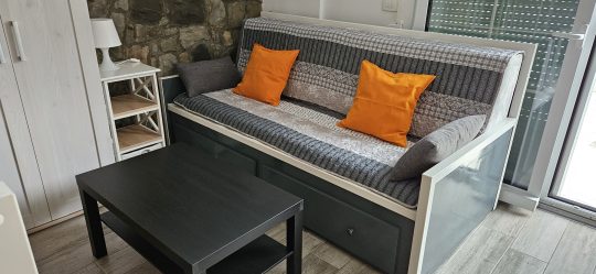 Appartement von 40 m2 mit separatem Schlafzimmer, Wohnzimmer mit Ka-TV, Einzelbett und einem Zusatzbett und Essecke, Badezimmer (Bad/Dusche und WC/Bidet) und Terrasse. Die ausgestattete Kochnische hat eine Mikrowelle, Kühlschrank, Wasserkocher und Kaffeemaschine.
