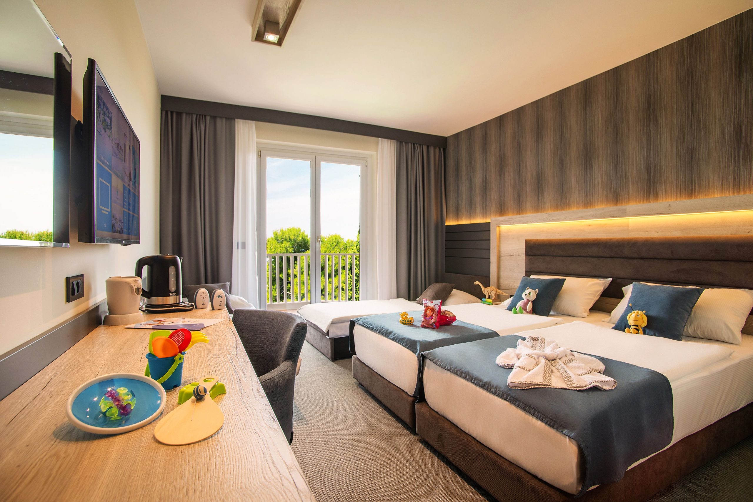 Die 3* Dependancen und 4* hotels befinden sich in einem grünen Park direkt am Meer. Aufgrund ihrer hervorragenden und ruhigen Lage und Unterkünften mit einer großen Auswahl an Familienzimmern sind sie bei Familien sehr beliebt. Der Strand Simonov zaliv ist sehr beliebt mit umfasst 3500 m2 Wasserfläche und cca 6000 m2 Landflächt und mit Kieselsteine ist ideal für Familien mit Kindern. Am Strand befinden sich Beachvolleyballplatz, Rutsche und Sandkasten für die Kinder. Der größte Teil des Strandes ist mit Kiefer und Akazien, die einen Naturschatten bieten, bepflanzt.